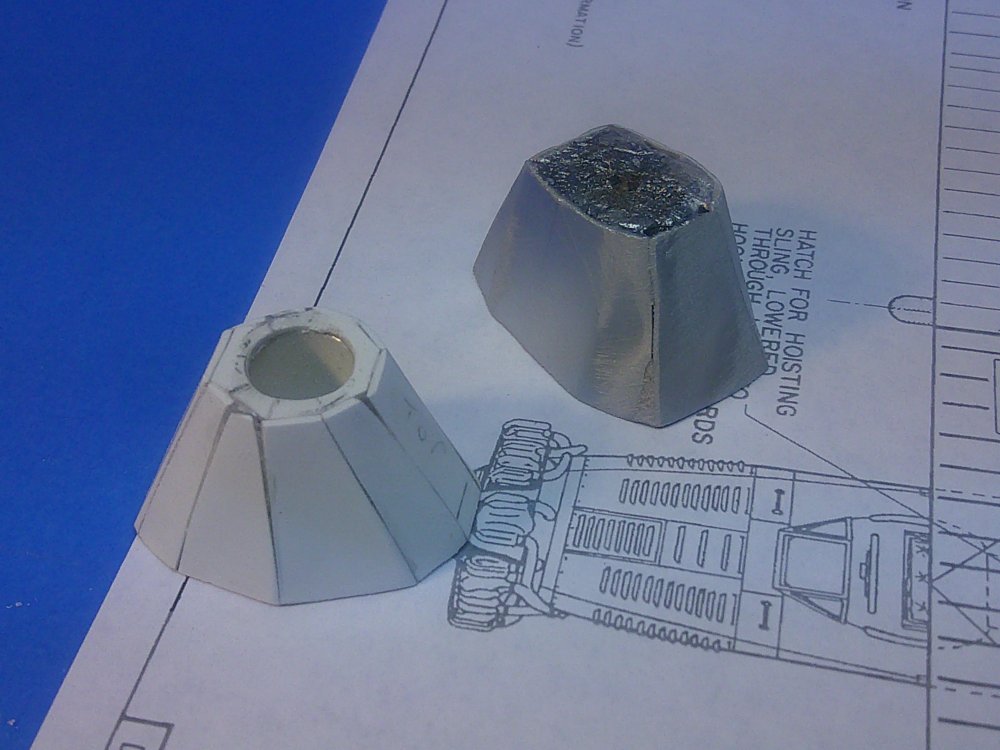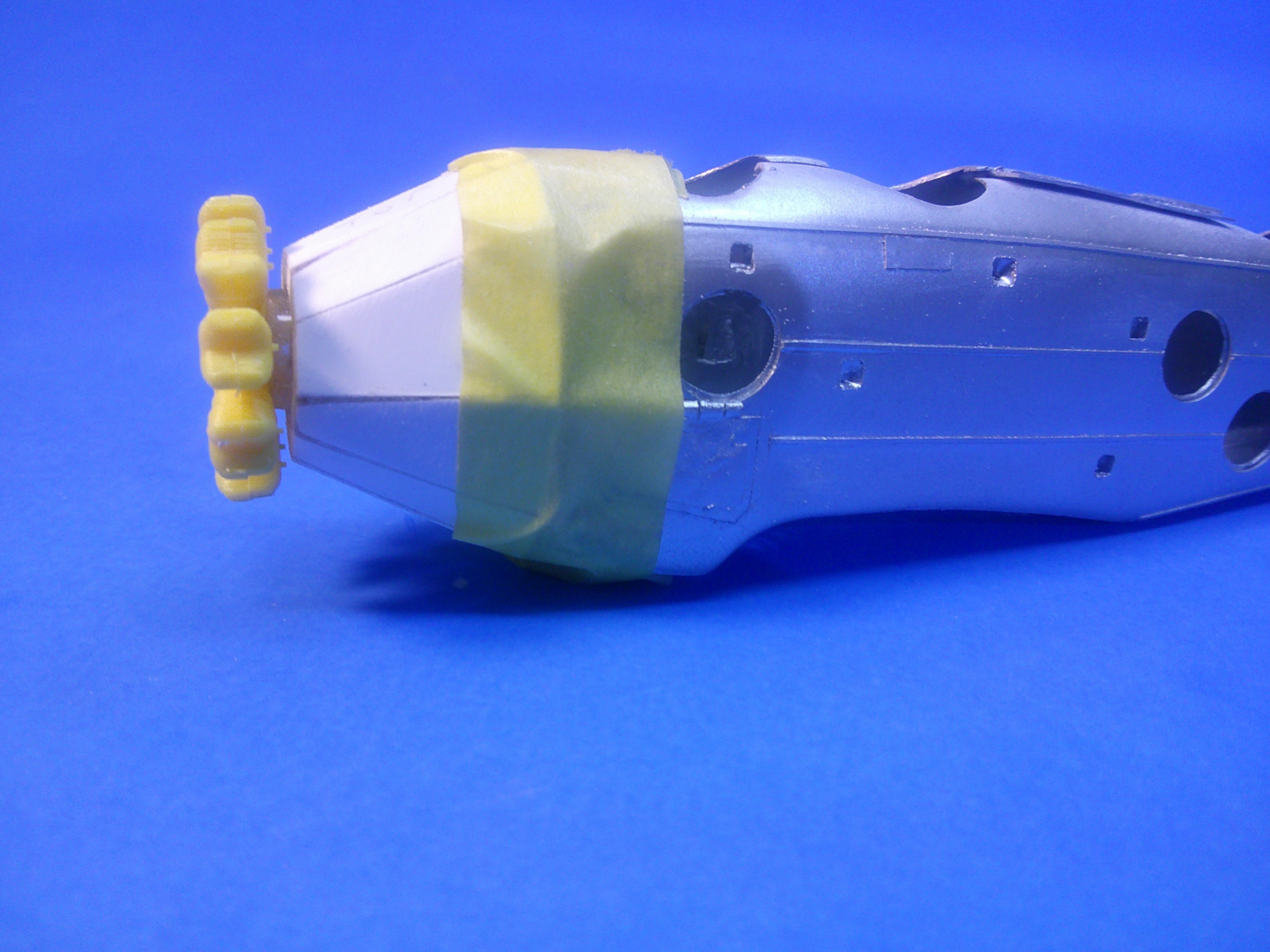 2. Part of scratchbuilding is having to rework and rebuild things along the way. I wasn't satisfied with the original nose I built for the 1/48 T4M-1; so I started over from "scratch" and built what I think is a better one. The back plate matches the front of the vac fuselage, The front octagonal plate establishes the end of each section as well as gives the front measurement for each. Note the engine with tubing glued to its back that will fit into the nose when done. Shot of test fitting the engine.... there's some room to move the engine in or out to allow for the exhaust manifolding on the back to be built up later. As you can see, the original nose had a top panel that was much too wide and each of the other panels weren't as well defined. By building the new nose using flat panels cut to shape I could get the top center panel the correct size and make each one's "match" on the other side of the nose the same size until it was filled in all the way around. Note all of the air louvers on the drawing that will need to be added before I can call the nose "finished". Test fitting the nose to the fuselage. Although it's is slightly larger in diameter where they meet, there's a thin "proud" strip that wraps around the nose just in front of the front cockpit that will help even out that difference. It can't be added until after the fuselage has been glued together. With some luck this will be the last major "build" job of this project and I can get the vacuform fuselage halves glued together and the nose added to complete the fuselage. Hopefully, after that, the rest will be simply a matter of normal parts detailing, gluing and aligning, and other such "mundane" work as done to complete any other model. We'll see! Gil