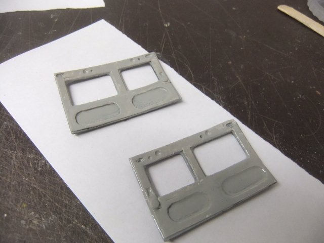 Most all of the interior parts are built now.... Overall view of this week's work.... If you look closely you can see (front to back) the PE rudder pedals and cables, both of the throttle quads and their cable, the torpedo drop control console/handles bottom right front, the trim control wheel on the left center of the middle cockpit along with an emergency hydraulic pump on the right side, and the Lewis gun ammo drum racks in the back of the rear cockpit. This is a view from the other side where you can see the radio (with a sending key out of view) on its rack in the front of the rear cockpit. Not seen is the pivoting seat for the rear cockpit. The main IPs are being built using the traditional sandwich method. The holes for the IPs where made using a Waldron punch and die set. These assemblies will be sprayed black and then the fronts pried from the backing sheet so the black instruments can then have their individual markings scribed in place. More pics of that when they're done. Gil
