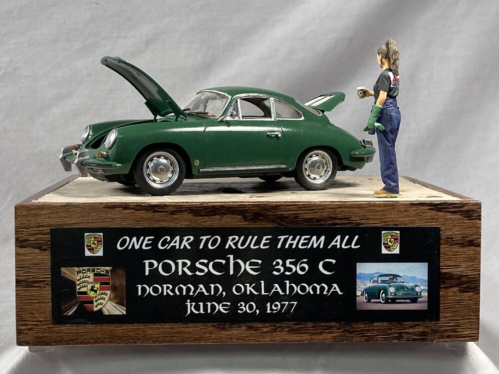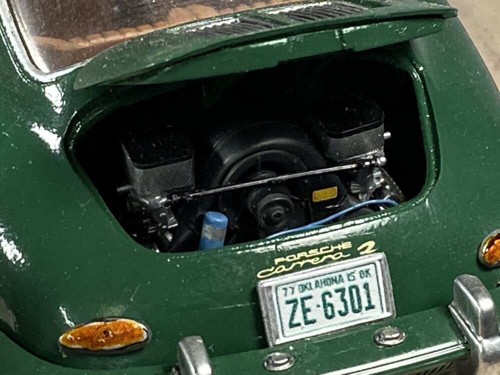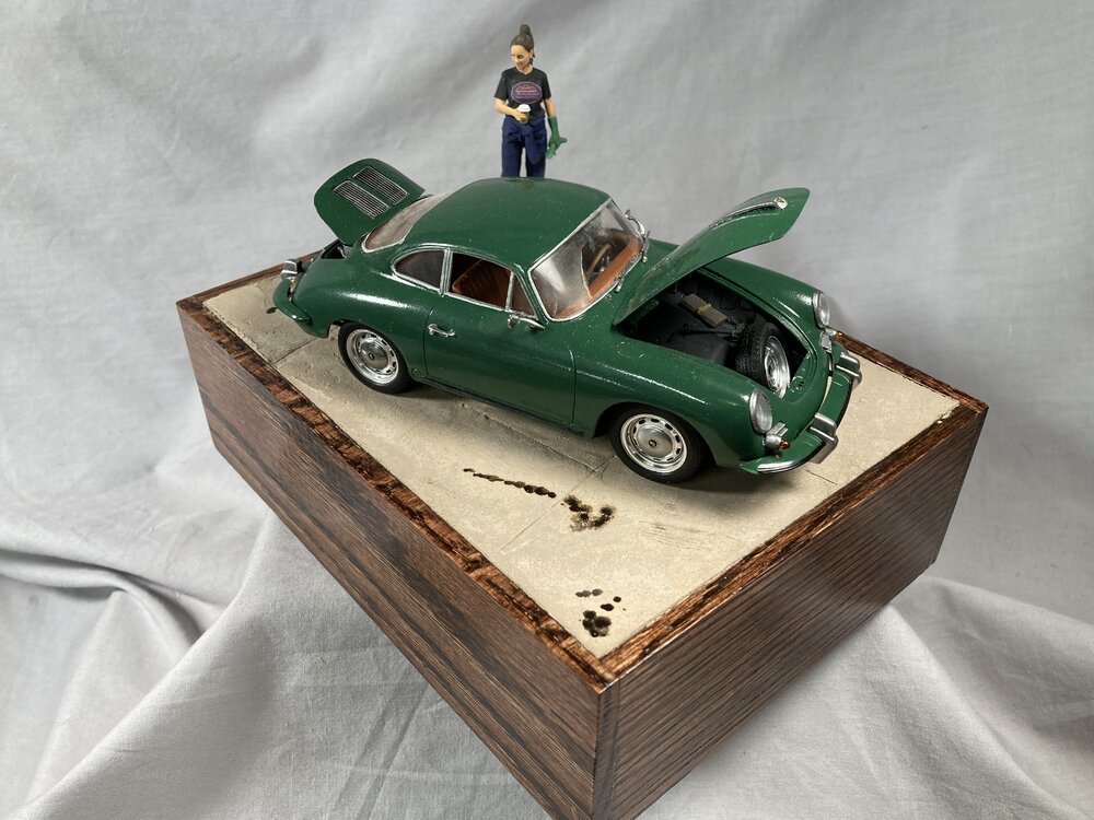 This is the Fujimi 1/24th kit. I had started it back in 1986 and only got as far as starting to paint the body. I found it in the garage stash last month and decided to finish it. Added some Porsche manuals to the interior along with keys in the ignition and an air freshener. The figure is from DEF. The kit does not live up to how good it looks in the box Dak