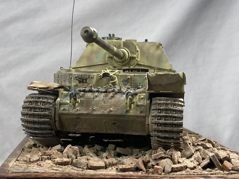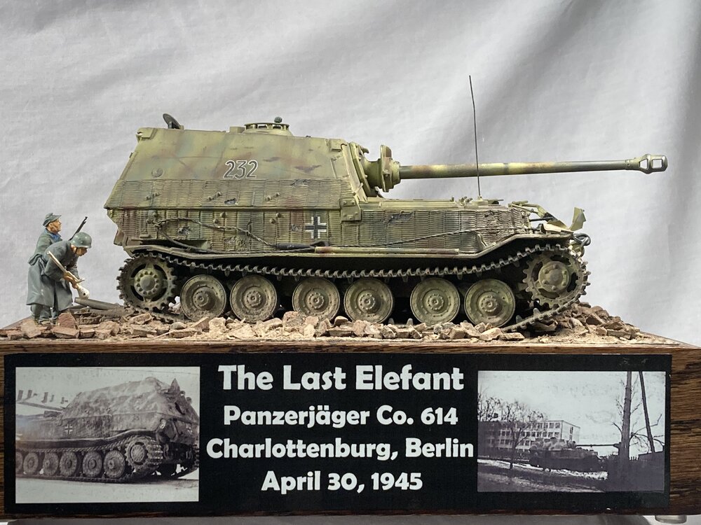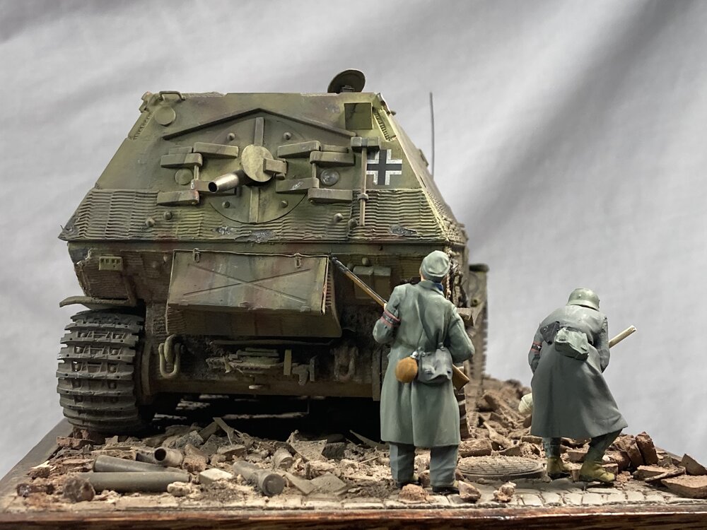 The DML late Elefant with Stalingrad figures. Berlin, 1945. The zimmerit is from Cavalier. Bricks are homemade with tile grout in J'sWork molds. Dak