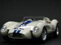 This is the excellent 1/24 scale Hasegawa kit of the famous Ferrari Testa Rossa 250 pontoon fender as she appeared in the 1958 24 hours of Le Mans race. I spray-painted the body shell Tamiya Racing White, and polished her up with Micro Mesh abrasive 3200 grit before giving her a couple of coats of Tamiya Clear. Once the clear was dry, I polished again with Micro Mesh in increments up to 12000 grit, with a final rubbing using Novus #2, then #1. Next I applied the most excellent Cartograf decals that were included with the kit. The upholstery was spray-painted with Tamiya Dull Red. Seats were piped with Detail Master ignition wire bent to approximate shape, taped at increments, and then fixed to exact shape and clear-glued between the taped points. The ignition wire proved to be a perfect scale for the piping application! Seatbelts are made from masking tape spray-painted with Tamiya Gunmetal, with Studio 27 P/E hardware installed. (The texture of the masking tape and the paint color make for a convincing seat belt) Windscreen was trimmed with Bare Metal Foil. The power plant replication is a work of art by those craftsmen at Hasegawa! Engine block & timing cover were given a couple of coats of Alclad II spray-paint over gloss black, and the valve covers are Tamiya Italian Red with a satin clear top coat, and the Ferrari emblem and rib details were rubbed with a silver pencil. Throttle linkage is .005 guage wire from Studio 27, fuel line is clear/yellow rubber tubing from Model Factory Hiro. Ignition wire is from Detail Master, and the plug boots were cut from parts-box hollow rubber tubing. Headers were painted Tamiya NATO Black, and soft-polished with a Dremel tool. P/E hood & trunk pins are from Studio 27. The P/E wire wheels and real rubber tires are from Model Factory Hiro, and are the finest I’ve ever used, but sadly, are no longer available due to some license disagreement with Ferrari.